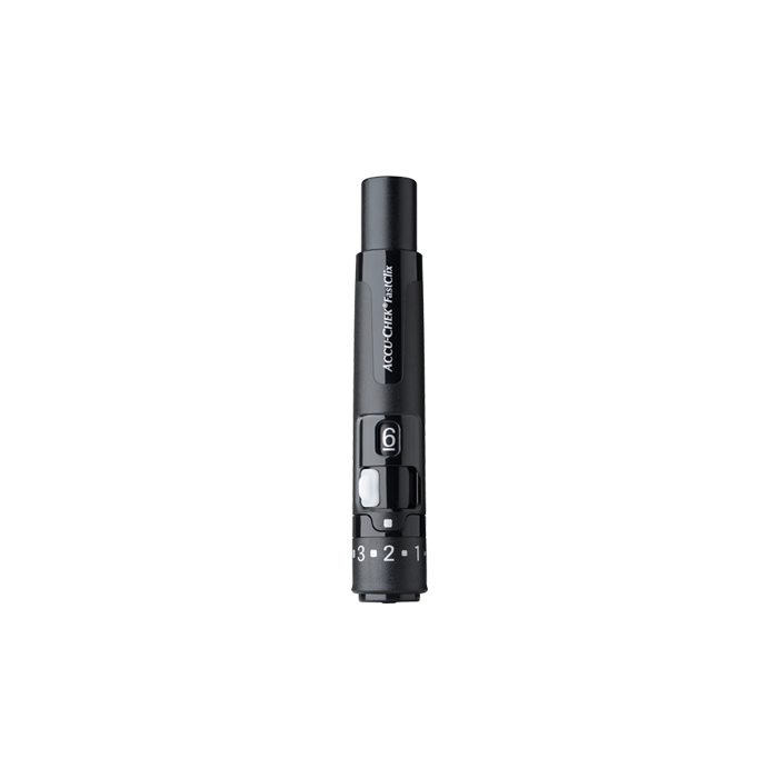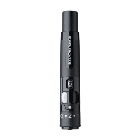 L’autopiqueur Accu-Chek FastClix permet de prélever du sang capillaire sur l’extrémité du doigt. Une seule pression sur le bouton de déclenchement permet d’armer l’autopiqueur et de déclencher la piqûre à l’aide d’une lancette. Il peut être réglé sur 11 profondeurs de piqûre, à choisir en fonction du type de peau. Il comprend un barillet de 6 lancettes, évitant de manipuler des lancettes individuelles.
