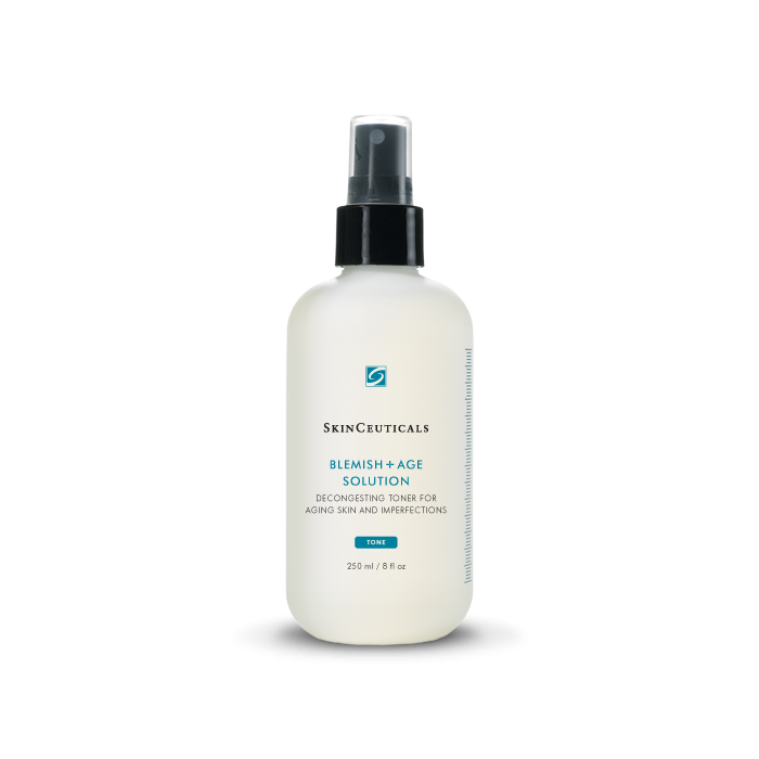 Conçu pour les peaux à imperfections, ce tonique est idéal pour nettoyer et tonifier la peau avant la routine de soin. Cette lotion – sous forme de spray – améliore l’aspect des épidermes sujets au photovieillissement.Formulé avec des agents exfoliants, Blemish+Age Solution réduit la taille des pores et exfolie les cellules mortes pour une peau visiblement plus belle.Parfait pour les peaux à imperfections sévères.