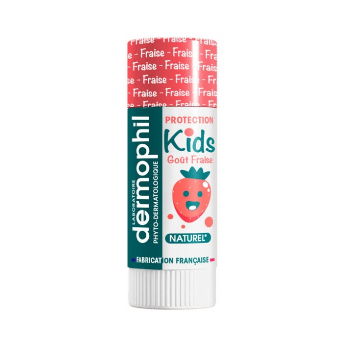 Dermophil Indien Kids Protection Lèvres 4 g - Parfum : Fraise est un stick spécialement formulé pour la protection des lèvres fragiles des enfants.
