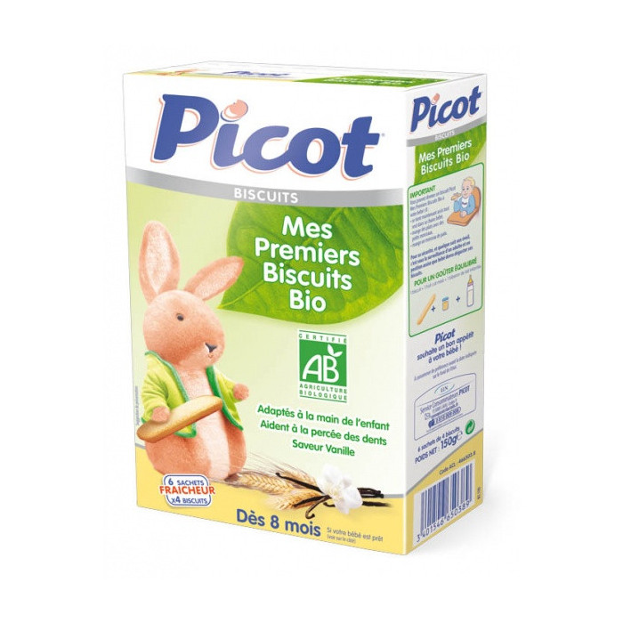 - Vous pouvez donner un biscuit Picot Mes Premiers Biscuits à votre Bébé s'il : - se tient maintenant assis tout seul dans sa chaise, - mange des plats avec des petits morceaux, - mange un morceau de pain. Pour sa sécurité, et quelque soit son éveil, c'est