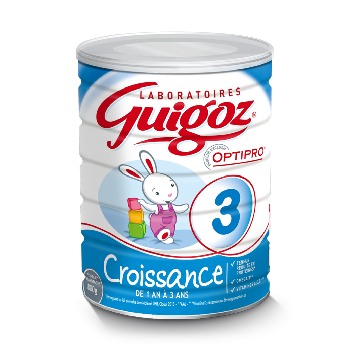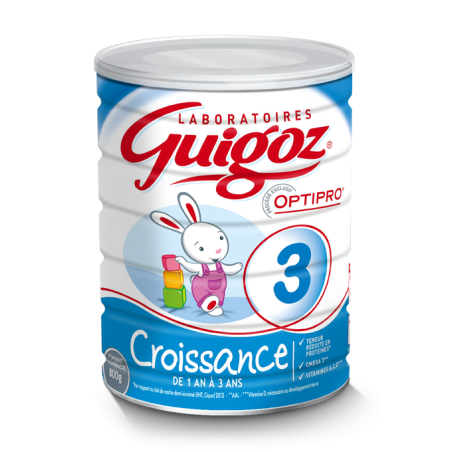 Le Lait Croissance 3ème âge de Guigoz est un lait maternisé spécialement formulé pour couvrir les apports nutrionnels des bébés de plus d'1 an afin d'assurer une croissance équilibrée et harmonieuse.
