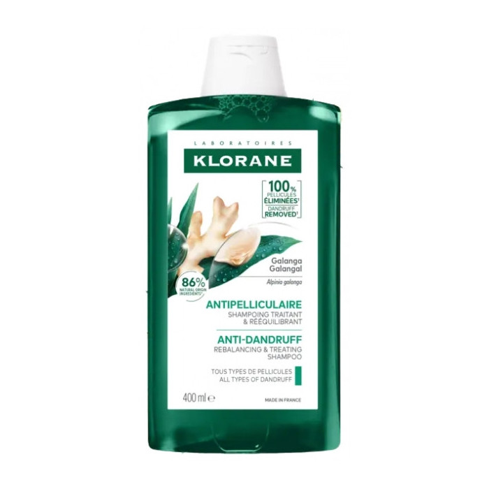 Klorane Antipelliculaire Shampoing Rééquilibrant au Galanga 400 ml est un shampoing élaboré pour éliminer les pellicules visibles et apaiser le cuir chevelu.