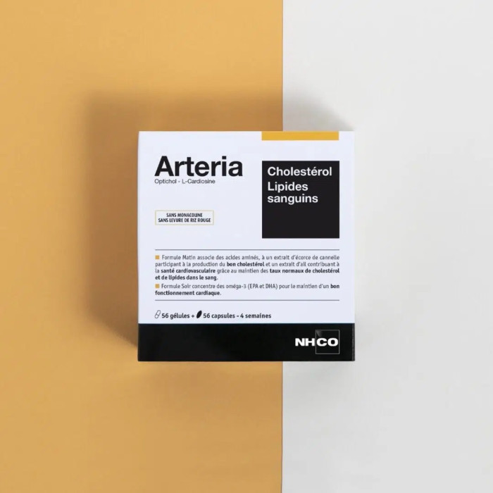 ARTERIA des Laboratoires NHCO Nutrition® est une solution innovante pour le contrôle des lipides sanguins. Ses formules Matin et Soir agissent à différents niveaux pour une action globale : Le complexe Optichol est une association unique d’un extrait breveté d’olivier, d’un extrait