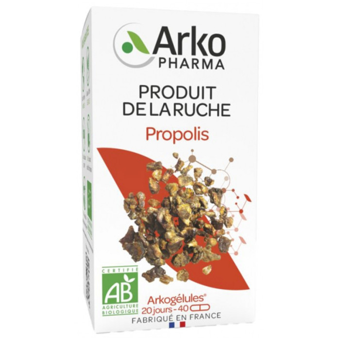 Arkopharma Arkogélules Propolis Bio 40 Gélules est un complément alimentaire à base de propolis.