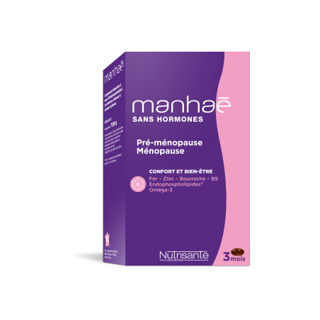 Manhaé offre une solution naturelle et sans risque à toute femme qui souhaite réduire ses bouffées de chaleur et sueurs nocturnes, retrouver son tonus et préserver son capital jeunesse en période de ménopause sans recourir aux hormones, même d'origine végétale (soja, lin, sauge...). Manhaé offre la première solution sans risque pour : - apaiser les bouffées de chaleur - calmer la nervosité - retrouver du tonus - redonner de l'éclat à la peau - retrouver des jambes légères
