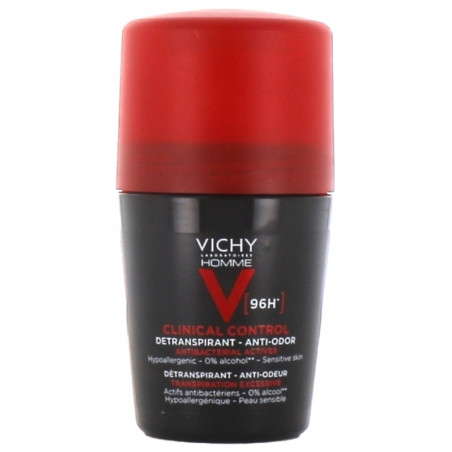 Vichy Homme Clinical Control Déodorant Détranspirant Anti-Odeur 96H Roll-On 50 ml est un déodorant détranspirant développé pour lutter contre la transpiration excessive.