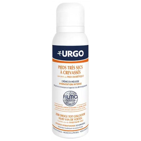 Urgo Crème en Mousse Hydratation Intense 125 ml est une crème mousse dédiée au soin des pieds très secs et crevassés, y compris pour les pieds diabétiques.