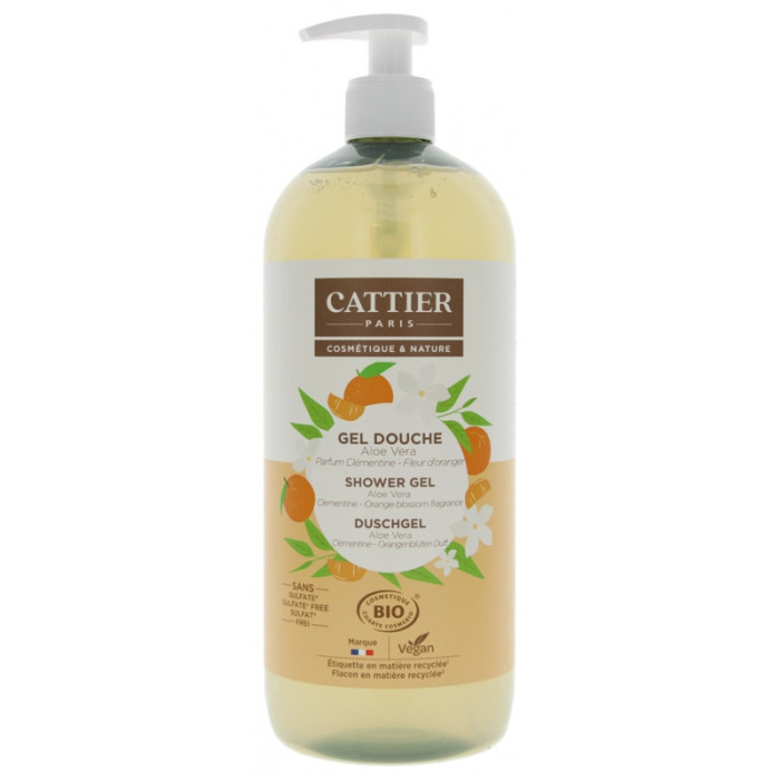 Cattier Gel Douche Aloe Vera Clémentine Fleur d'Oranger Bio - 1 L