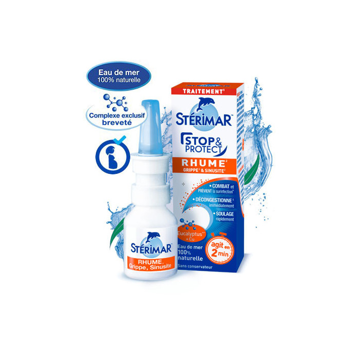 - Solution hypertonique d'eau de mer filtrée 100% naturelle et sans conservateur, riche en oligo-éléments marins et enrichie en cuivre et en huile essentielle d'Eucalyptus.