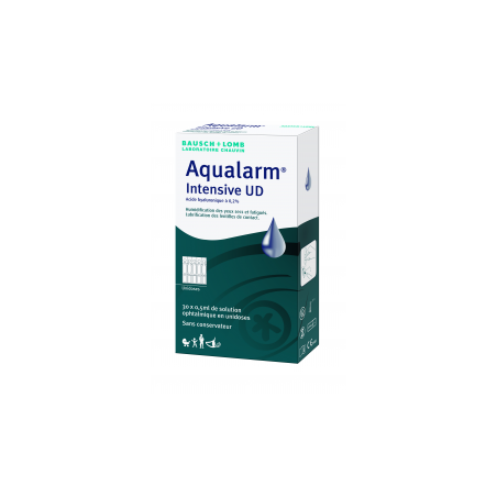 Bausch + Lomb Aqualarm Intensive UD 30x0.5ml est une solution d'acide hyaluronique dosé à 0.2%, spécialement indiquée pour l'humidification des yeux secs et fatigués.