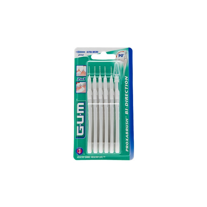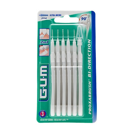 Les Brossettes interdentaires Bi-Direction de GUM permet un nettoyage facile des espaces interdentaires grâce à sa tête orientable à 90°. La tige ultra résistante permet de prolonger la durée de vie de votre brossette.