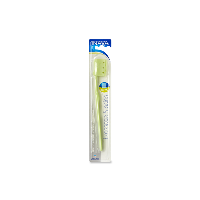 Inava Brosse à dents 20/100 est une brosse à dent souple recommandée par les chirurgiens-dentistes pour le brossage et les soins quotidiens de vos dents.