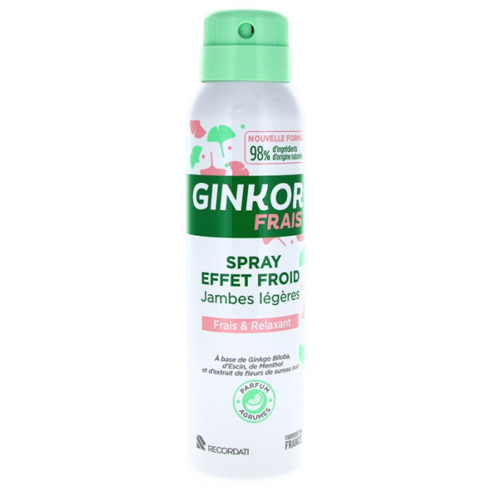 Ginkor Frais Spray Effet Froid Jambes Légères 125 ml est un spray à effet froid qui soulage les jambes lourdes en procurant, dès l'application, une sensation de fraîcheur intense et de relaxation pour des jambes légères.