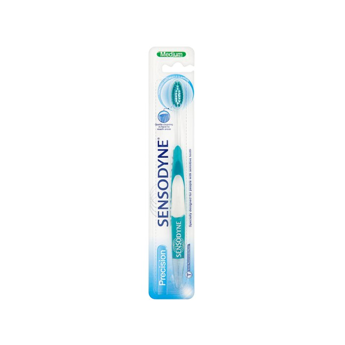 La brosse à dents Précision Dents Sensibles de Sensodyne® a été spécialement conçue pour les personnes ayant les dents sensibles.