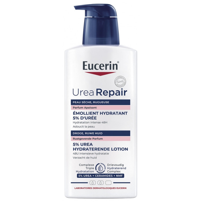 Eucerin UreaRepair PLUS Émollient 5% d'Urée Parfum Apaisant 400 ml est un émollient pour apaiser immédiatement les signes de sécheresse cutanée en retardant leur apparition.