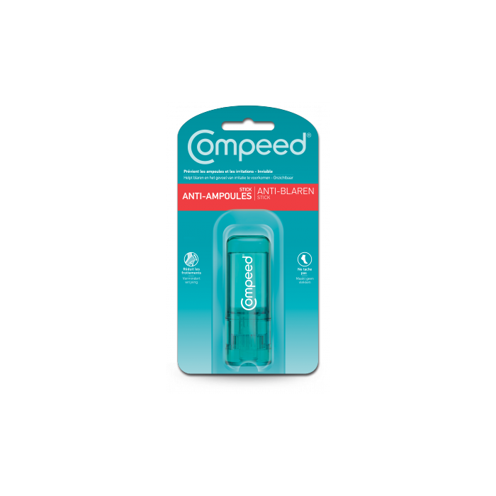 Le stick anti-ampoules de Compeed prévient les ampoules et les irritations. Sa formule naturellement lubrifiante réduit instantanément les frottements. Il ne tache pas et ne rend pas les pieds glissants.