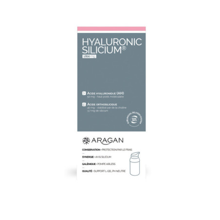 Hyaluronic Silicium en pompe airless est une association unique de l’acide hyaluronique à haut poids moléculaire avec du silicium pour la peau.