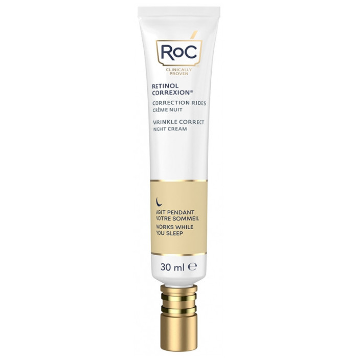 RoC Retinol Correxion Correction Rides Crème Nuit 30 ml est une crème qui agit pendant la nuit pour réduire les rides d'expression et les rides profondes.