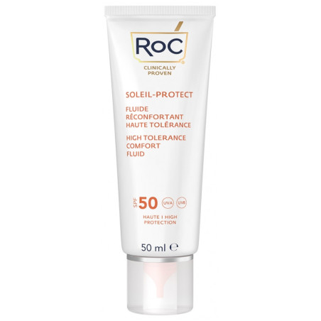 RoC Soleil-Protect Fluide Haute Tolérance Réconfortant SPF50 50 ml est un fluide qui réconforte les peaux sensibles et protège leur capital jeunesse. Il est aussi léger qu'un soin hydratant quotidien.